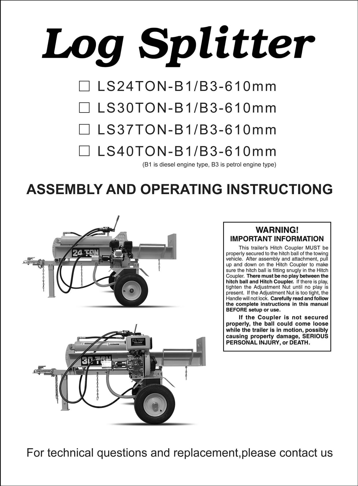 Opera T Or S Timberwolf Log Splitters Manualzz